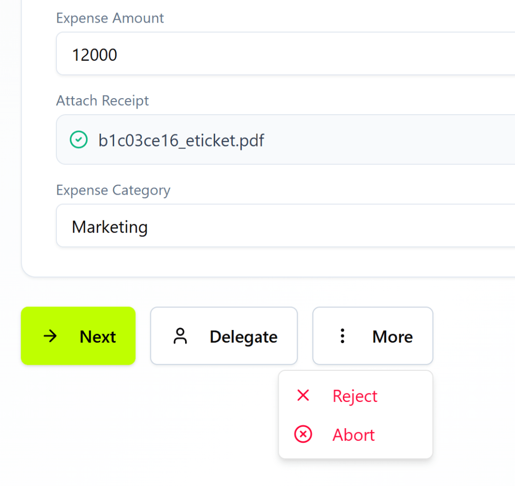 Simply enter voice or text ideas and let yourself be inspired by AI with ready-made business processes. Upload specific requirements that will be implemented in processes. Start ready-made ad hoc workflows immediately based on the recognized document type of an file upload.