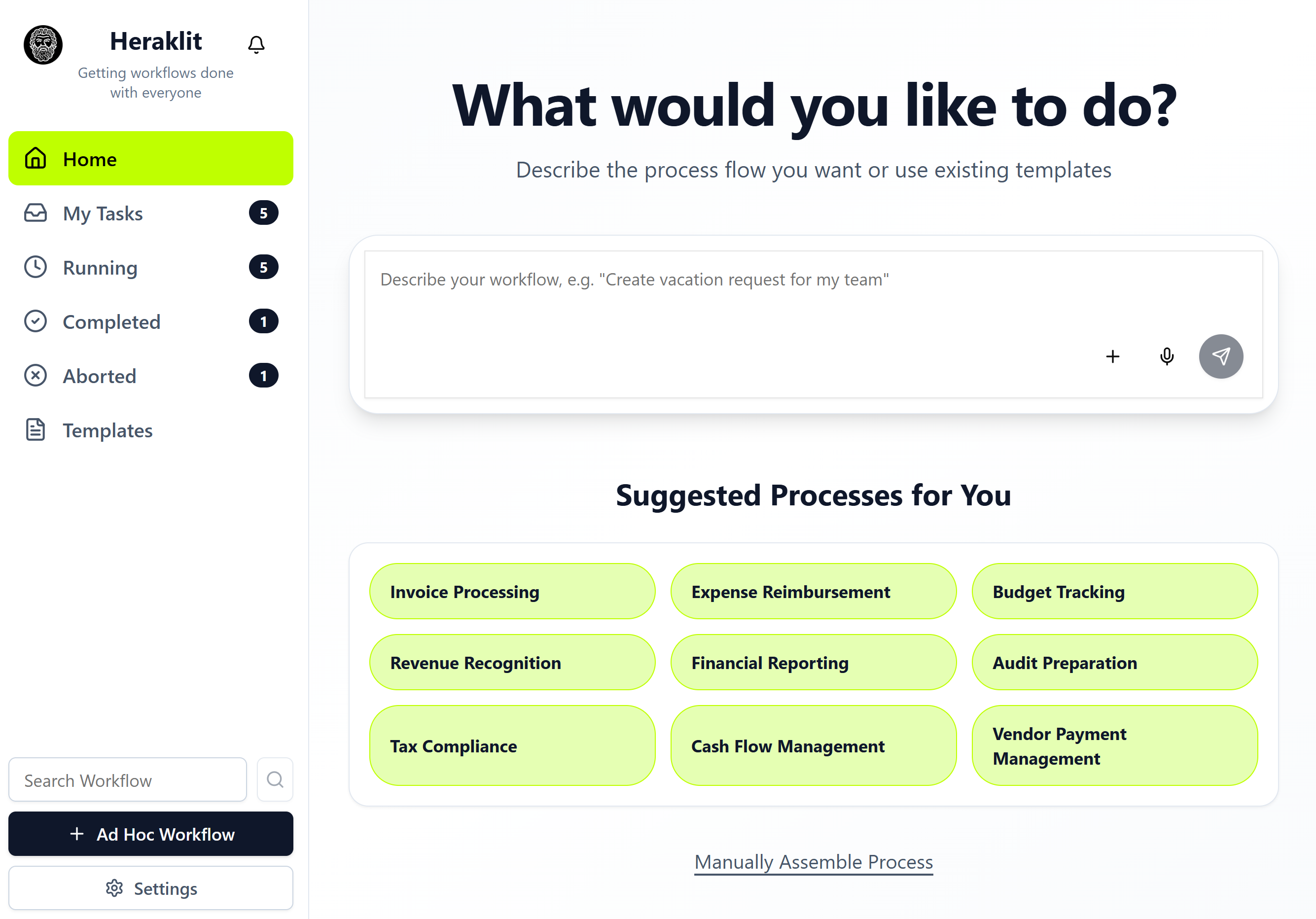 Heraklit offers you an AI-based business process that can be implemented immediately in seconds, based on your documents and ideas. Become digital, transparent, reliable, and fast. Secure your business future in uncertain times.